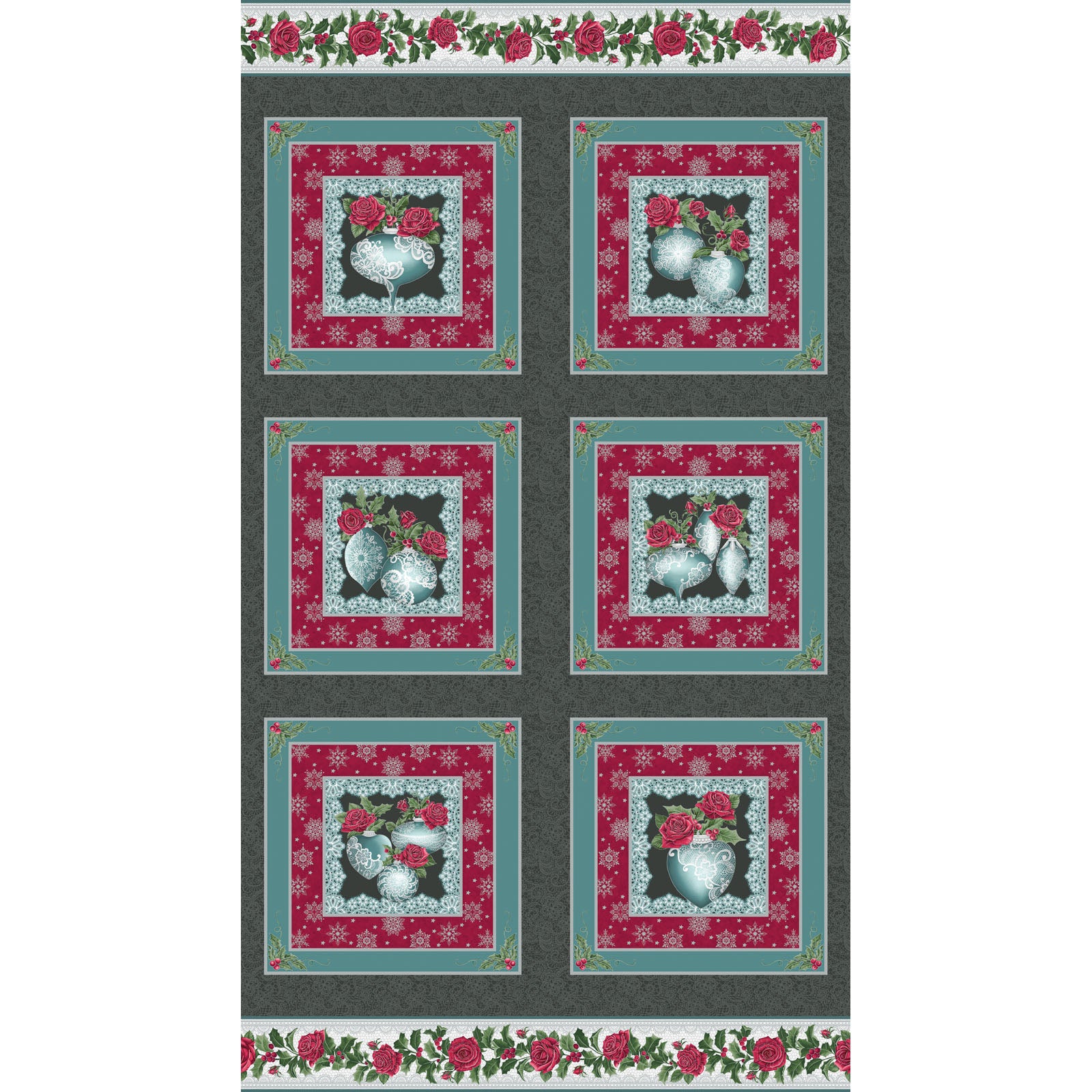 A FESTIVE SEASON charcoal/teal 24"x42" Panel