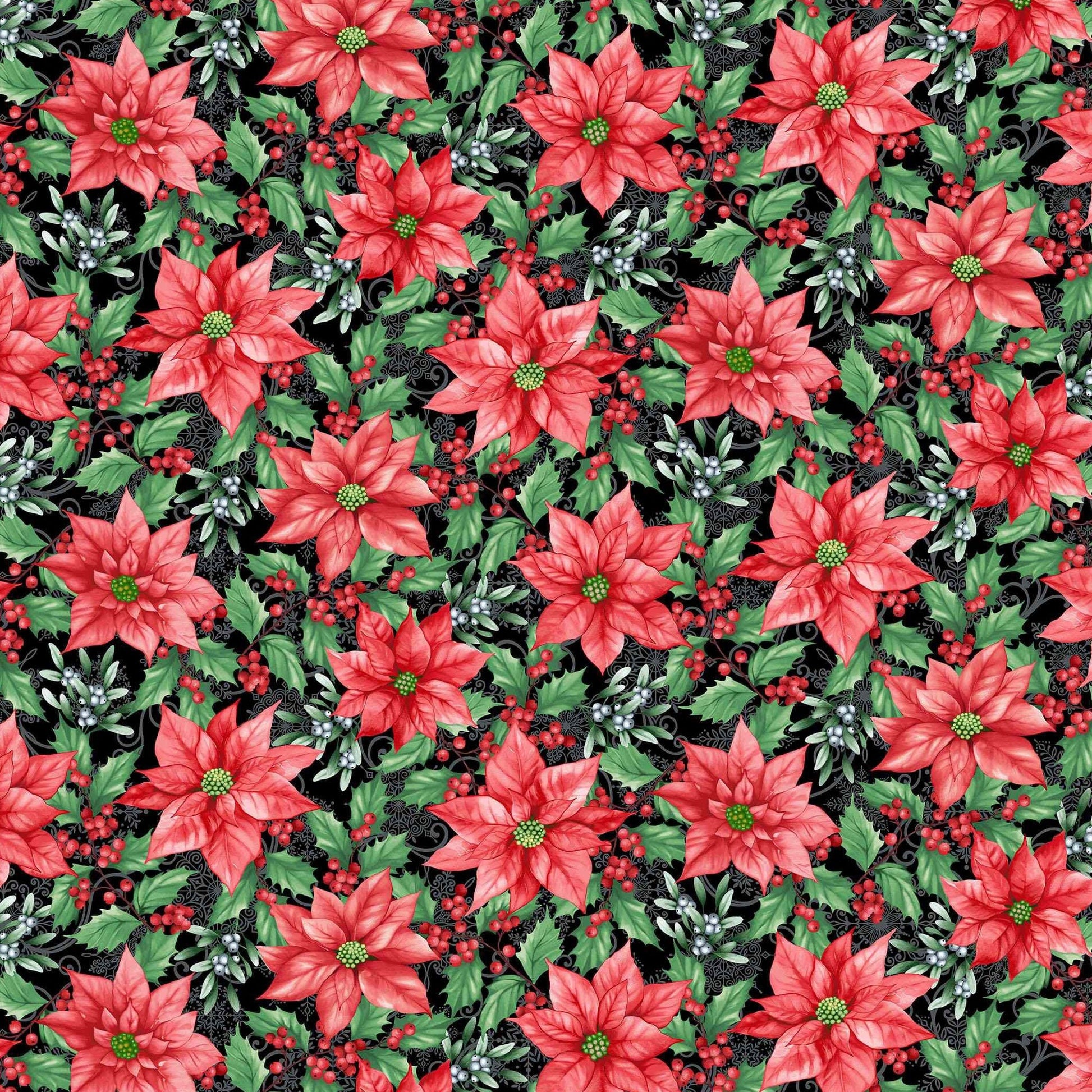 BLOOMS OF THE HOLIDAY Poinsettias black multi