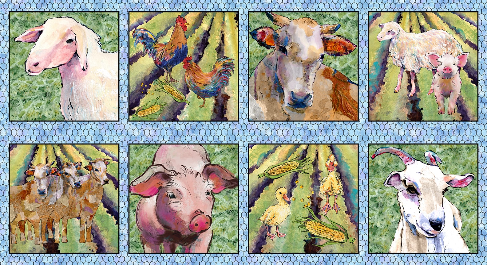 OUT OF FARM'S WAY Farm Blocks green 24"x43"